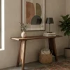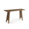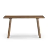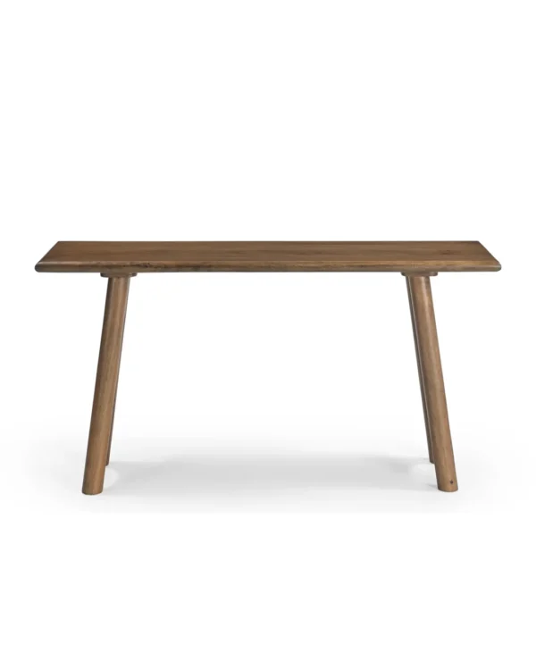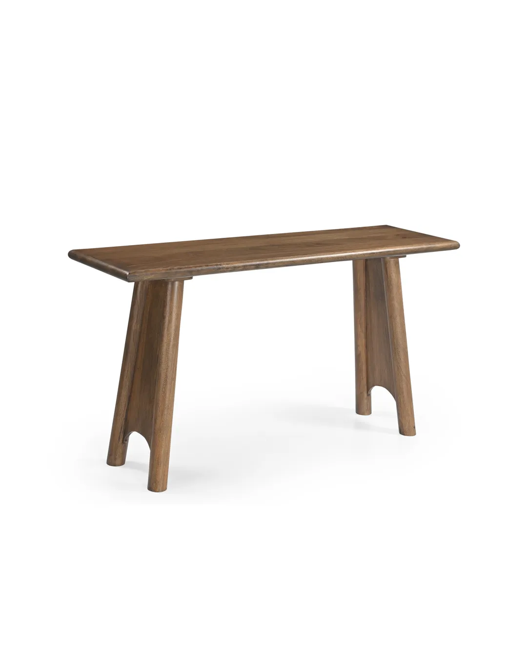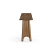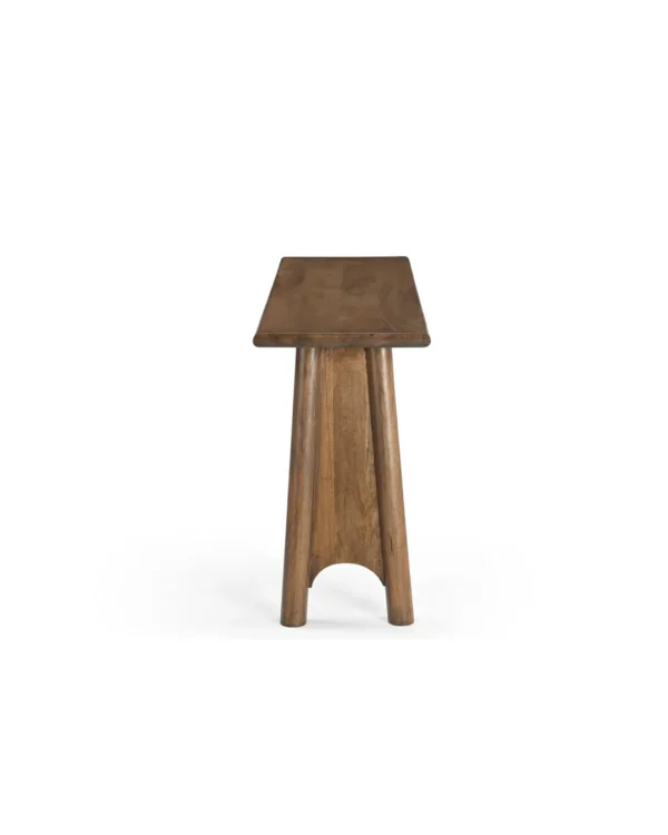 Design Profile: The design relies on a bold, A-frame geometry. The legs are splayed outward, providing visual stability and a sense of “groundedness.” The most distinct feature is the parabolic or arched cutout at the base of each leg, which lightens the visual weight of the heavy timber and adds a touch of mid-century architectural flair.