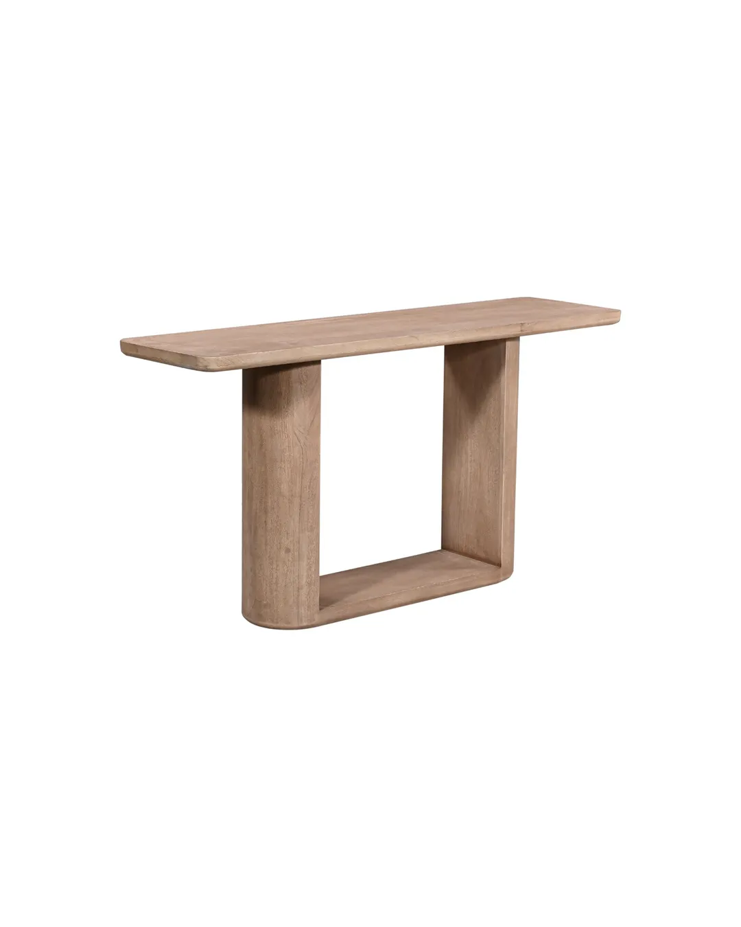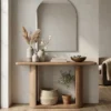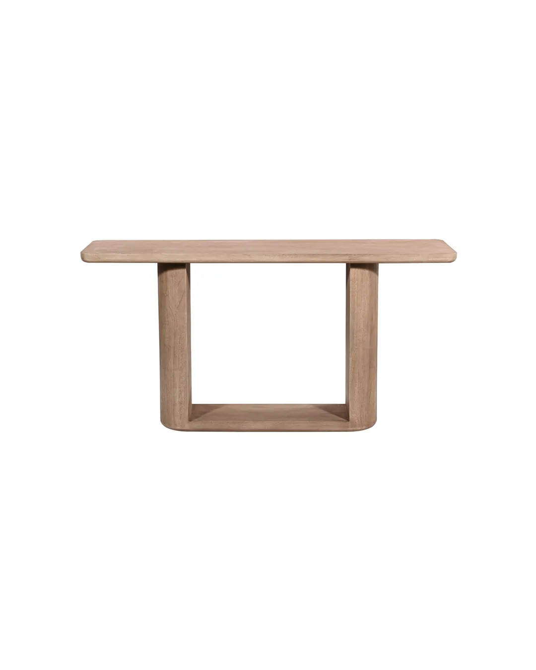 Design Profile: The design profile is defined by Architectural Minimalism and the “Quiet Luxury” of structural honesty. By utilizing a heavy, pedestal form and then “sculpting” it to reveal a void, the table achieves a balanced and unique aesthetic that bridges the gap between furniture and functional art. The hand-finished mango wood emphasizes tactile warmth, while the wide, rounded base ensures maximum stability within a narrow footprint. This piece is an ideal fit for Japandi, Scandia-Modern, or high-end Coastal interiors that prioritize light-filled spaces and serene, monochromatic palettes.