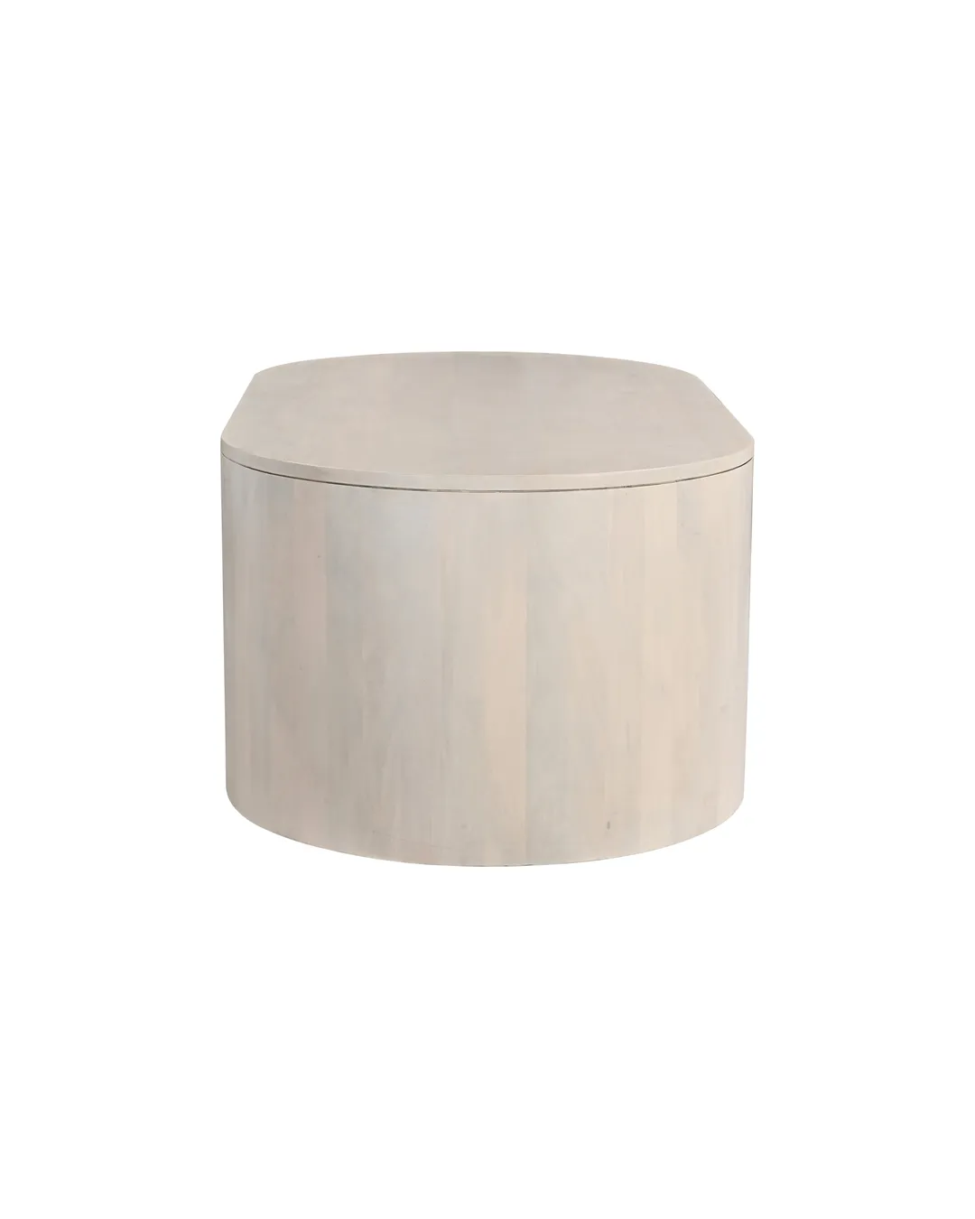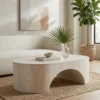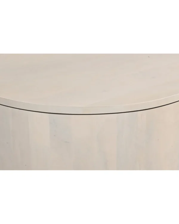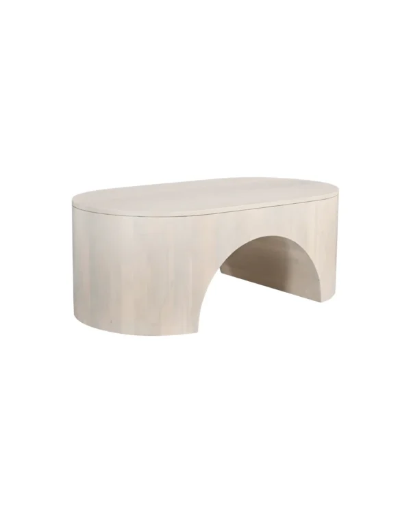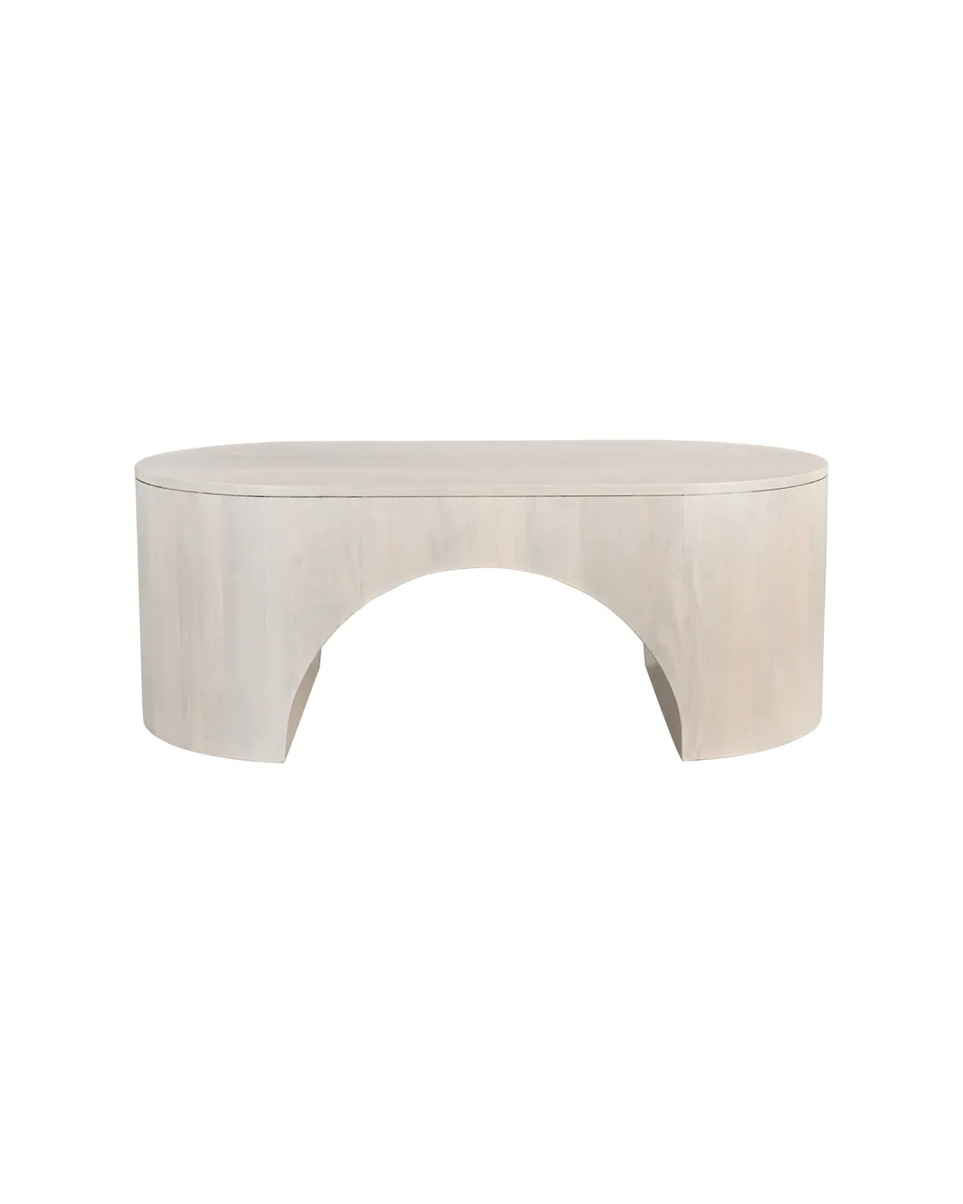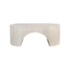 Design Profile: Crafted from premium solid wood and finished in our signature Alabaster wash, the table possesses a soft, chalky texture that mimics the light-absorbing qualities of hand-carved stone. The arched “portal” creates a captivating play of shadow and light, adding a sense of visual depth and movement to the grounded, Brutalist silhouette. It is an exercise in Quiet Luxury, where the strength of the geometry is balanced by the organic warmth of the wood grain.