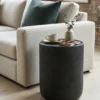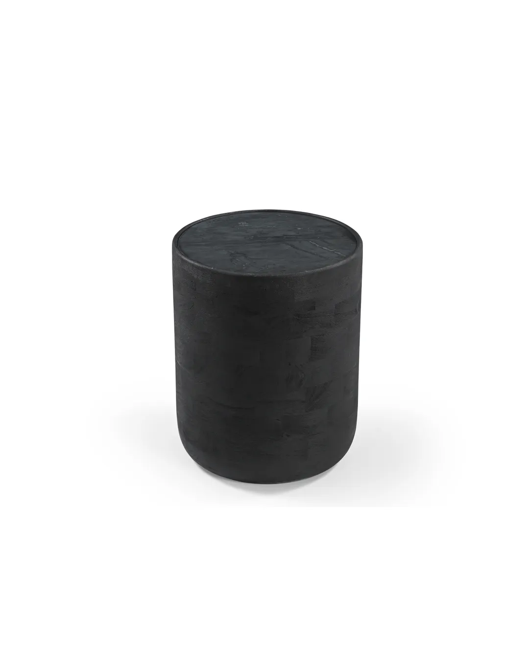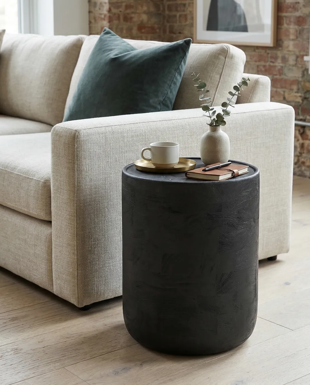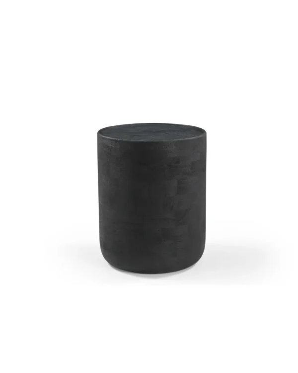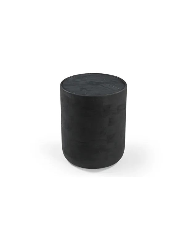 Design Profile: This accent table features a unique “half-drum” or semi-circular silhouette, designed with a flat back to sit flush against a wall or sofa. Its monolithic form is defined by a seamless top and a deep, rounded front that tapers softly at the base, emphasizing a bold, architectural minimalism.