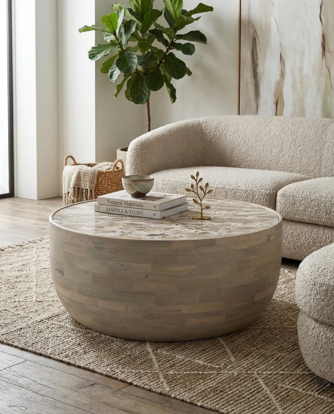 Design Profile: This coffee table features a bold, monolithic “bowl” silhouette, defined by its seamless circular top and a deep, elegantly curved base. The solid, low-profile design emphasizes heavy geometric minimalism, showcasing a consistent matte texture that wraps fluidly around its architectural form.
