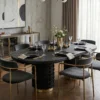 Design Profile: Designed for the modern home that values both drama and intimacy, this dining table acts as a functional sculpture. The absence of sharp corners and the inclusion of recessed pedestal bases allow for maximum legroom and versatile seating arrangements. Whether placed in a minimalist industrial loft or a richly textured organic-modern space, it serves as an anchor of strength, craftsmanship, and timeless style.