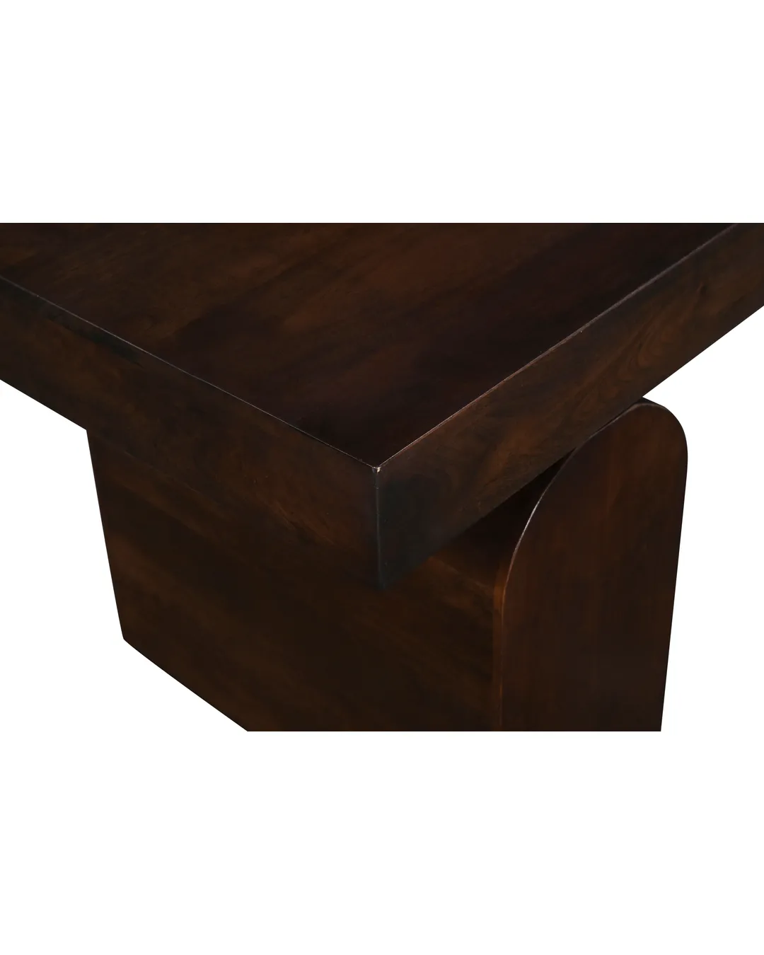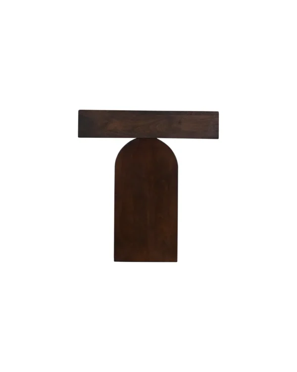 Design Profile: The design profile is rooted in Modern Brutalism and Architectural Minimalism, focusing on pure geometric intersections. By utilizing a “T-shape” composition with a vaulted support, the table achieves a sense of monumental stability and “Quiet Luxury.” The exaggerated thickness of the tabletop and the solid, sculptural base make it a functional art piece that anchors a room. It is an ideal companion for low-slung, contemporary sofas or as a standalone accent in minimalist or Japandi-inspired interiors that value structural honesty and a dark, sophisticated palette.
